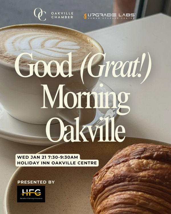 Have your morning coffee with the Oakville business community! 🌞Good (Great!) Morning Oakville is a friendly and fun atmosphere to connect with like-minded professionals over fresh coffee & breakfast.☕️ Looking for an extra shot of espresso? Register for a Member Spotlight (limited spaces available) to address the room and spotlight your business for 3 minutes.🗓 Wed January 21📍 Holiday Inn Oakville Centre7:30 – 8:00am Registration & Breakfast8:00 – 9:30am Around-the-Room Intros, Member Spotlights, and Networking 🤝 Thank you to our partners, Hynek Financial Group and Upgrade Labs Oakville, for making this event possible. This event is exclusive for Oakville Chamber members and their guests. Not a member yet? Connect with maria@oakvillechamber.com to learn more.