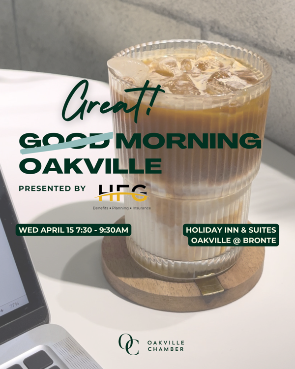 Have your morning coffee with the Oakville business community! 🌞Good (Great!) Morning Oakville is a friendly and fun atmosphere to connect with like-minded professionals over fresh coffee & breakfast.☕️ Looking for an extra shot of espresso? Register for a Member Spotlight (limited spaces available) to address the room and spotlight your business for 3 minutes.🗓 Wed April 15📍 Holiday Inn & Suites - Oakville at Bronte7:30 – 8:00am Registration & Breakfast8:00 – 9:30am Around-the-Room Intros, Member Spotlights, and Networking 🤝 Thank you to our partners, Hynek Financial Group for making this event possible. This event is exclusive for Oakville Chamber members and their guests. Not a member yet? Connect with info@oakvillechamber.com to learn more.
