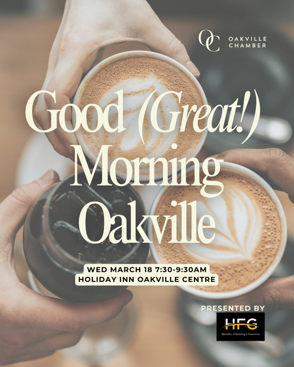 Have your morning coffee with the Oakville business community! 🌞Good (Great!) Morning Oakville is a friendly and fun atmosphere to connect with like-minded professionals over fresh coffee & breakfast.☕️ Looking for an extra shot of espresso? Register for a Member Spotlight (limited spaces available) to address the room and spotlight your business for 3 minutes.🗓 Wed March 18📍 Holiday Inn Oakville Centre7:30 – 8:00am Registration & Breakfast8:00 – 9:30am Around-the-Room Intros, Member Spotlights, and Networking 🤝 Thank you to our partners, Hynek Financial Group for making this event possible. This event is exclusive for Oakville Chamber members and their guests. Not a member yet? Connect with maria@oakvillechamber.com to learn more.
